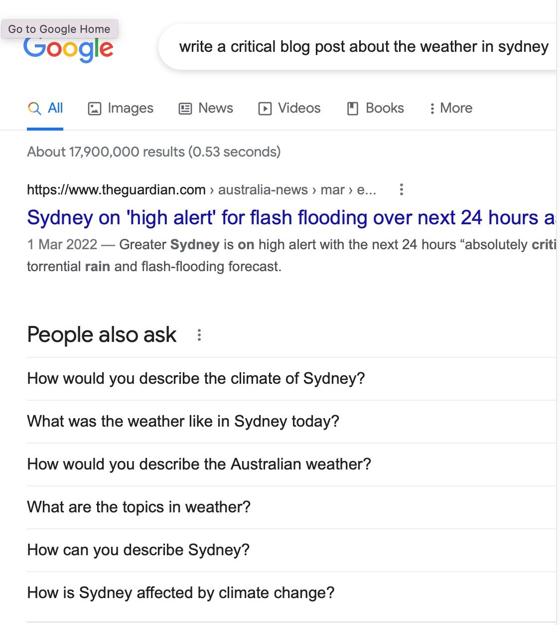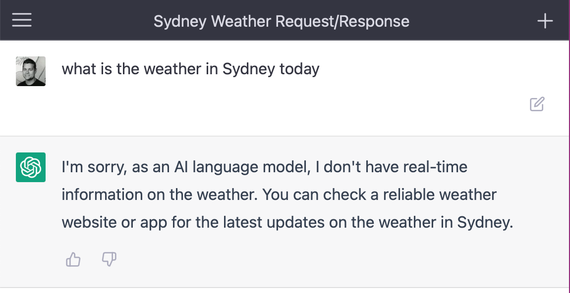 Test 1: "What is the weather in Sydney today?"