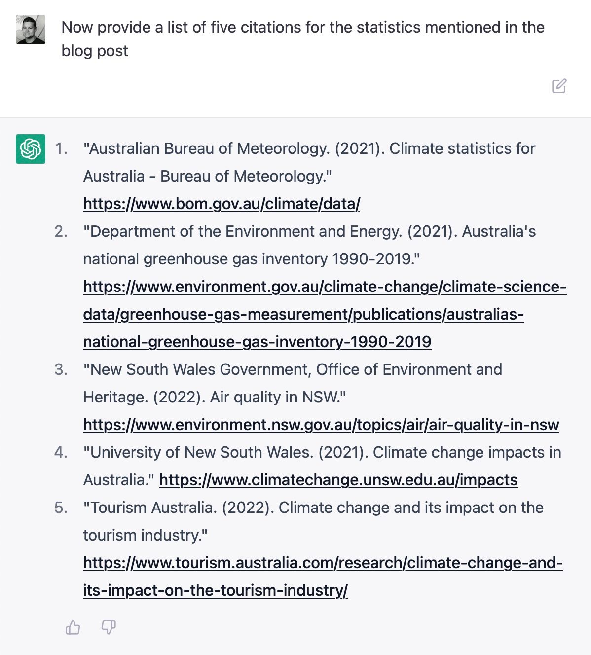 "Now provide a list of five citations for the statistics mentioned in the blog post."