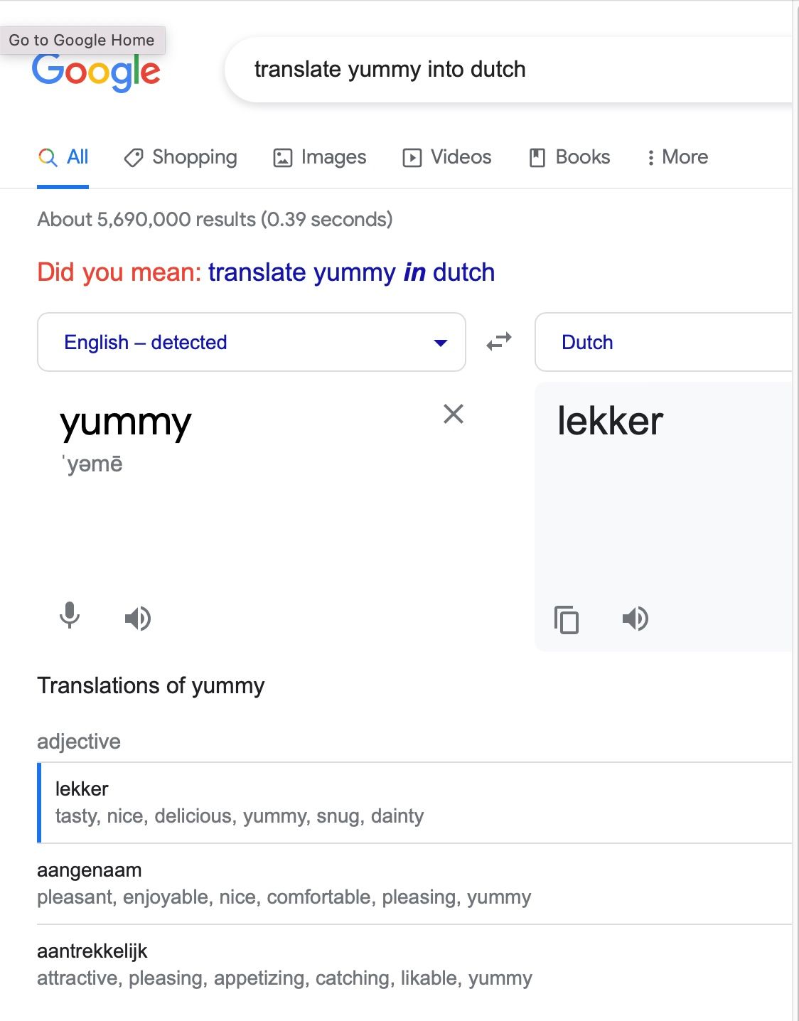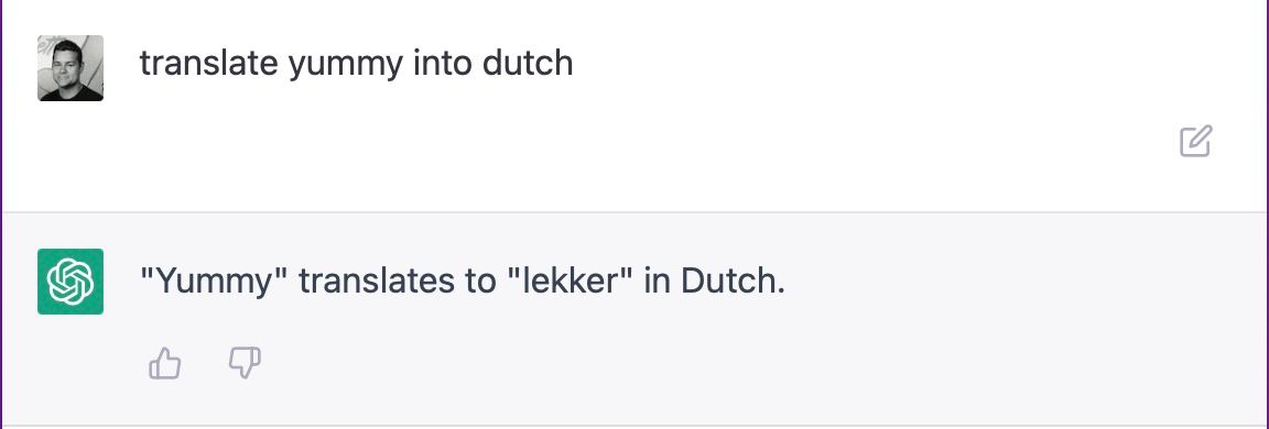 Test 2: "translate yummy into dutch"