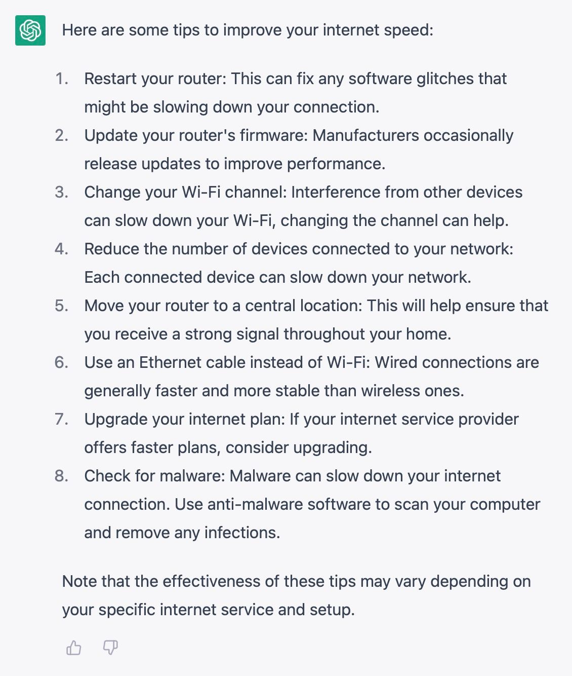 Test 3: "how do i improve my internet speed?"